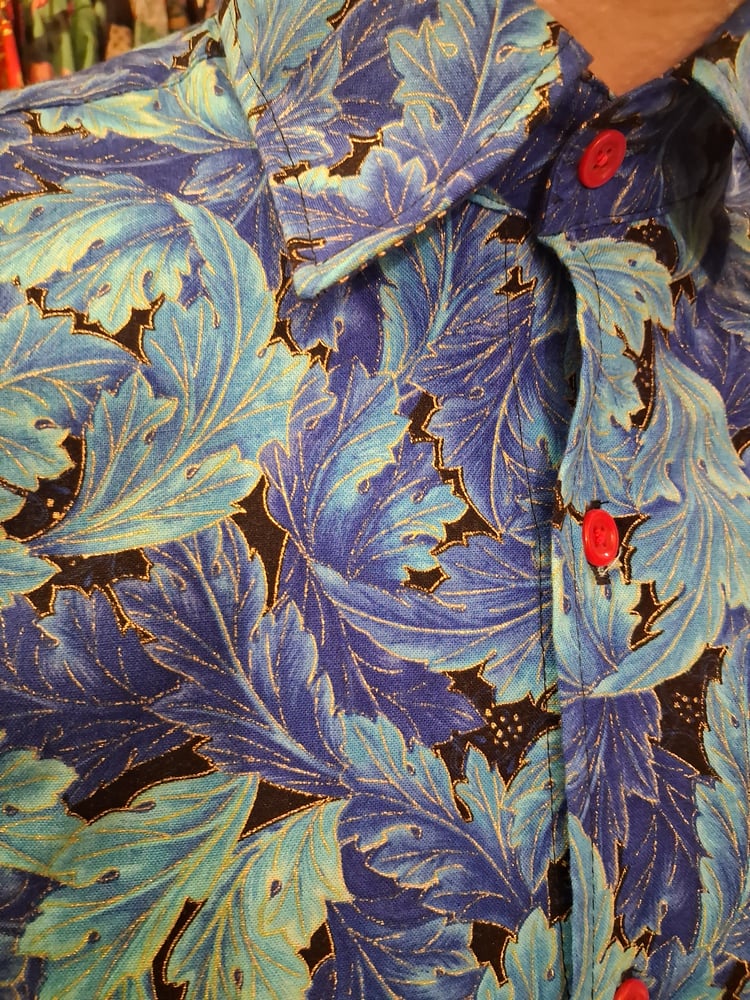 Absolutely amazing, blue leaves with a gold shiny metallic outline.