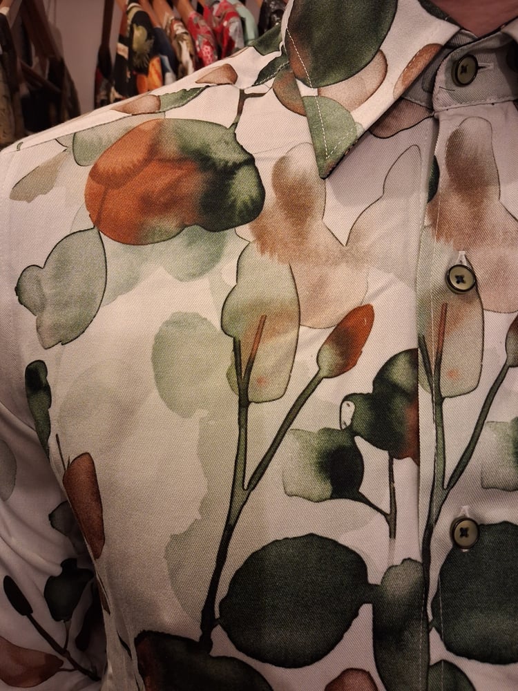 Wonderful watercolour leaves design on a lovely light weight cotton.