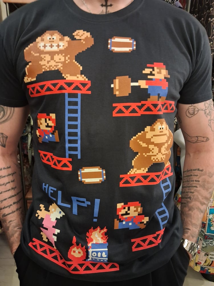 navy tee with gorilla game print